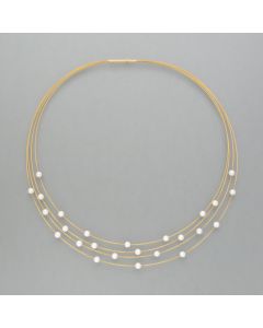 Unsere Perlencolliers bilden das moderne Gegenstück zur traditionellen Perlenkette. Wir kombinieren das edle Naturmaterial Perle mit silbernen bzw. vergoldeten Elementen und unterstreichen so den modernen Charakter. Alle Ketten sind auf Stahl gefädelt und mit silbernen oder goldplattierten Verschlüssen versehen.