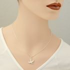 Dieser zarte Anhänger aus weiß gesiedetem Silber stellt eine leicht stilisierte, fliegende Schwalbe dar. Die sanft geschwungenen Linien geben dem Silberanhänger eine harmonische und friedliche Ausstrahlung. Symbolisch steht die Schwalbe für die Wiederkehr des Frühlings, für Hoffnung und Auferstehung. Wir empfehlen zu diesem Anhänger eine Silberkette in 42 cm Länge. Dazu passend finden Sie in unserem Onlineshop auch kleine Ohrstecker sowie Ohrhänger.