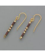 Dieses sportliche Armband besteht aus eckigen Hämatitscheiben zwischen denen in regelmäßigem Rhythmus polierte und vergoldete Silberwürfel auftauchen. So entsteht ein spannender Farbkontrast, das Armband wirkt aber dennoch harmonisch und ausgewogen. Verschlossen wird es durch einen praktischen Karabinerverschluss, und kann durch eine passende Halskette und Ohrhänger ergänzt werden.